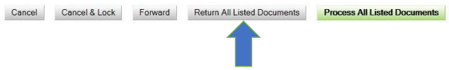 Click the Return All Listed Documents button to return all the documents associated to the submission for correction. Proceed to Step 8-B: Return Document.
