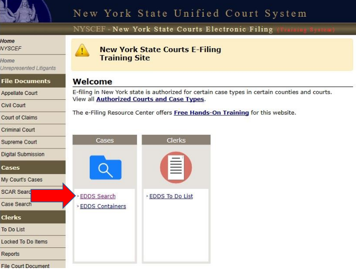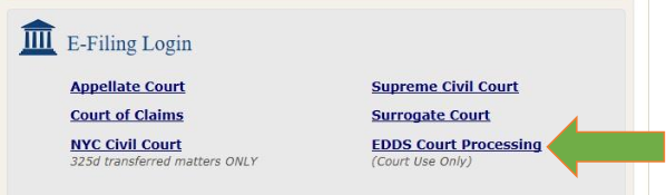 Go to the NYSCEF website and click the EDDS Court Processing link.
