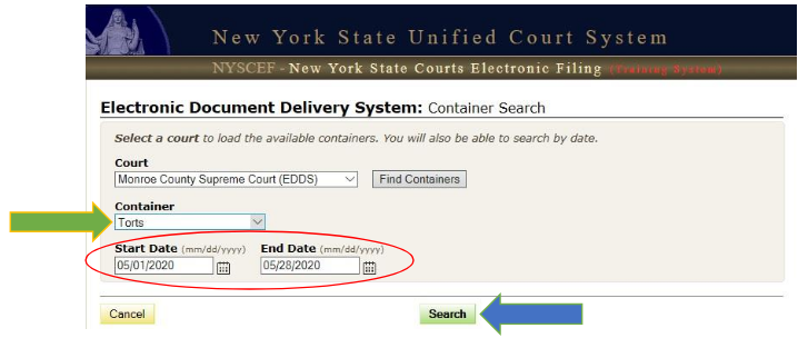 Select the Container from the Container drop-down list. Enter the date or date range that you wish to search. Click the Search button.