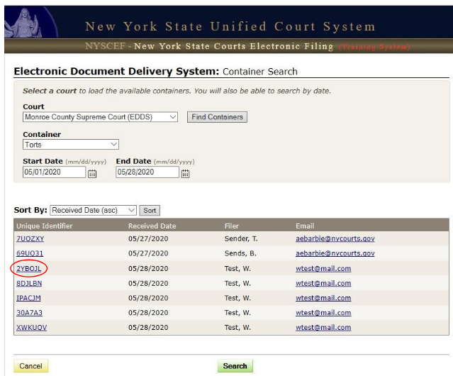 Step 2-C: Container Search (submissions list)
