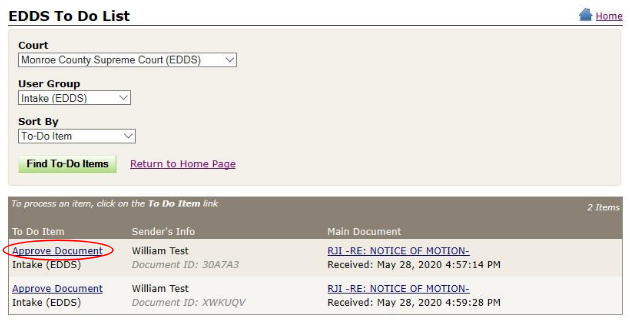 You can review and process documents submitted via EDDS in the court's EDDS To-Do List as listed below.