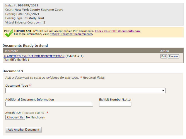 document you can click on "Add Another Document" to continue adding and uploading additional evidence documents. Once you have