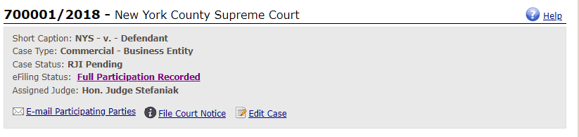 will also contain additional details such as the e-filing status of the case and any Assigned Judge: