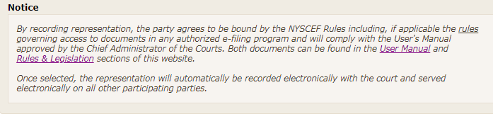 notification that you can record your consent to electronic filing in the NYSCEF system.