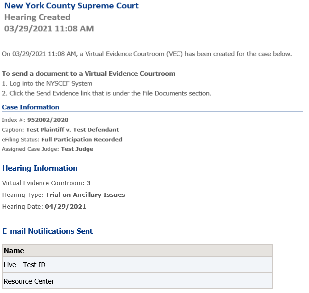 Evidence Courtroom (VEC) located on the NYSCEF website. If a case has